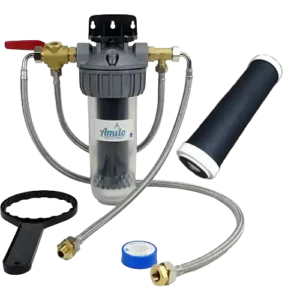 Le filtre vitalisant Amilo habitation filtre (micro filtration) et vitalise toute l’eau qui circule chez vous. Sans électricité, entretien ultra minimal.