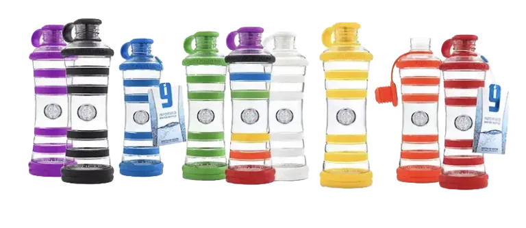 30 ans de recherche et 90 récompenses internationales pour cette bouteille de verre informé par un procédé exclusif et breveté. L’eau restructurée et vitale portable. Propriétés inaltérables, durée de la dynamisation 3h. Contenance : 0.65 L.